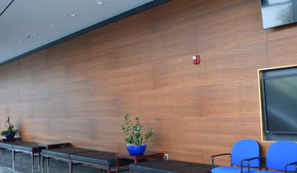 Murano Acoustics® wood ceilings and TerraCORE® Poly or a fiberglass acoustical backing can be installed behind our panels to optimize acoustic performance.